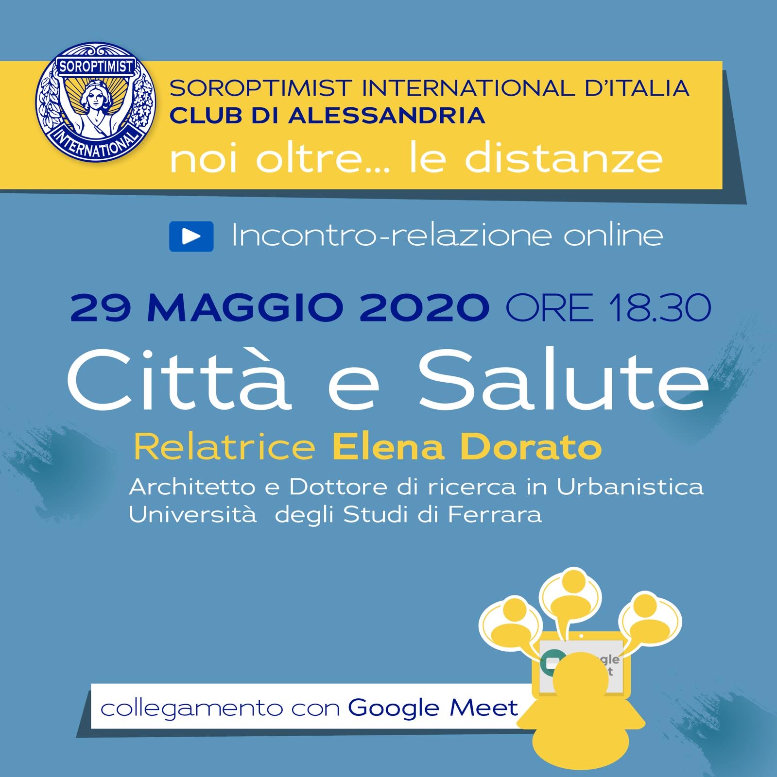 Su piattaforma Zoom, fedeli allo slogan coniato appositamente "NOI, OLTRE...LE DISTANZE", le Socie del Club ed alcuni Ospiti, si sono collegati per un incontro virtuale e per ascoltare la relazione di Elena Dorato (figlia di una nostra Socia) su una tematica accattivante ed inedita per tutte noi. Il titolo della relazione "Città e Salute" ci ha condotte nella trattazione di un argomento relativo agli spazi vivibili in una città "a misura d'uomo" (si diceva in passato) ora mirati al rispetto della salute e del benessere dei cittadini. Questo perché Elena Dorato è Architetto e Dottore di Ricerca Urbanistica presso il Dipartimento di Architettura dell'Università degli Studi di Ferrara. Si occupa, da molti anni, di studiare le relazioni e le implicazioni che intercorrono tra le discipline architettonico-urbanistiche e quelle della salute pubblica , lavorando per Enti pubblici e privati in Italia e all'estero. E' altresì membro di numerosi gruppi di ricerca internazionali e autrice di scritti scientifici su questo attualissimo tema. Proprio nel mese scorso è stato pubblicato un libro monografico dal titolo "Preventive Urbanism. The role of health in shaping active cities (Quodlibet 2020) (Urbanistica preventiva. Il ruolo della salute nella creazione della città attiva).